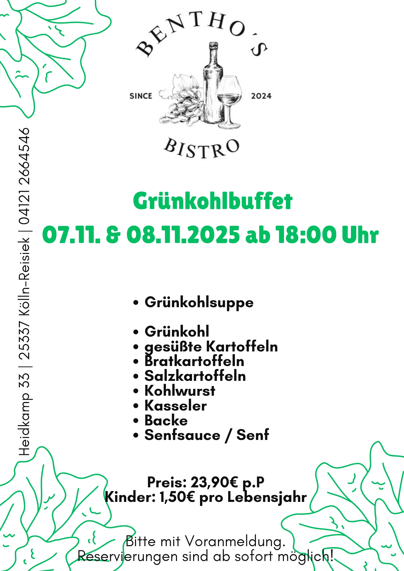 Ea gibt die nächsten 2 Termine für das Grünkohlbuffet.